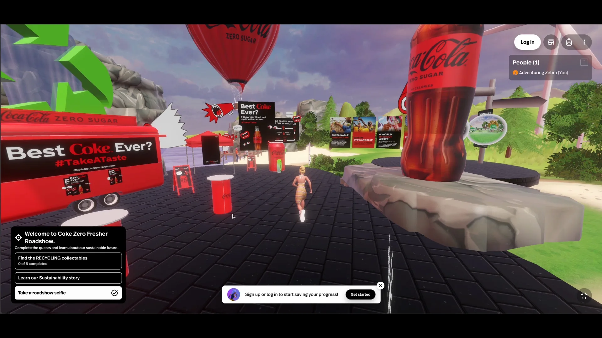 Students were invited to explore different virtual spaces, each offering engaging quests to complete and opportunities to learn about sustainability initiatives. Each space was designed with the individual brands’ look and feel including Coca-Cola Zero Sugar, Sprite, Costa and Monster.
